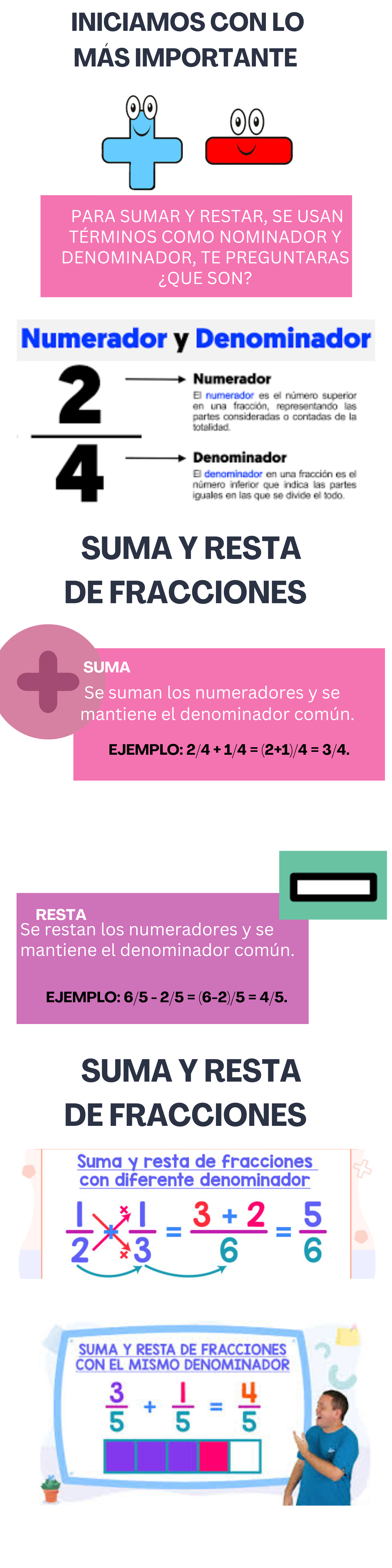 La suma y resta de fracciones es un tema fundamental en matemáticas porque nos permite resolver situaciones de la vida diaria, como repartir alimentos, medir distancias o administrar recursos. Para trabajar con fracciones, es importante comprender sus partes: numerador, denominador y la unidad que representan.